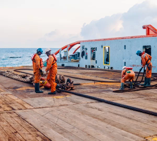 Vessel crew preparing vessel for static tow tanker lifting